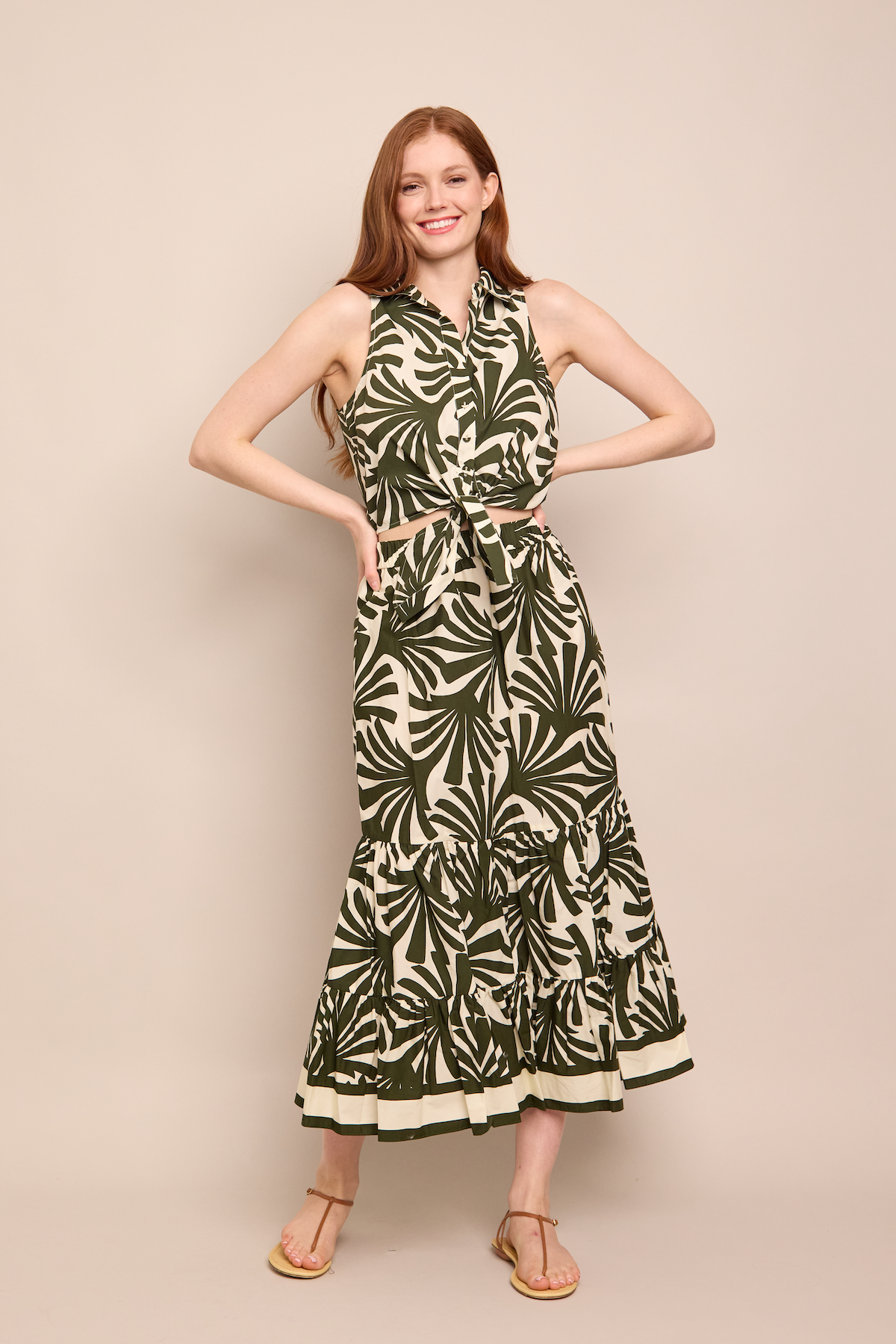 The Chase Skirt has a tiered A-line cut made from breathable cotton poplin with an elastic waistband so you can style it high or low on the hips.