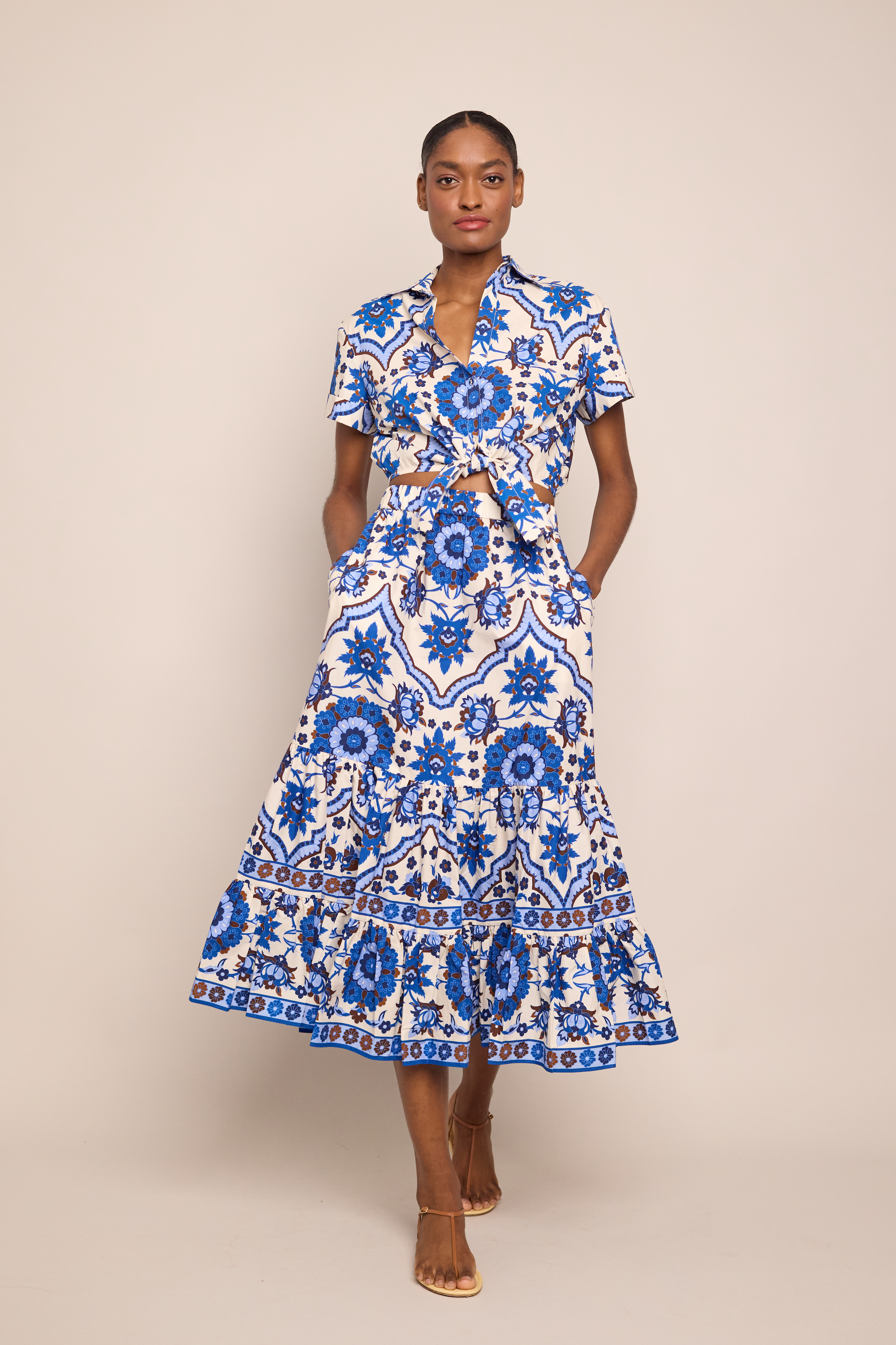 The Chase Skirt has a tiered a-line cut made from breathable cotton poplin with an elastic waistband so you can style it high or low on the hips.