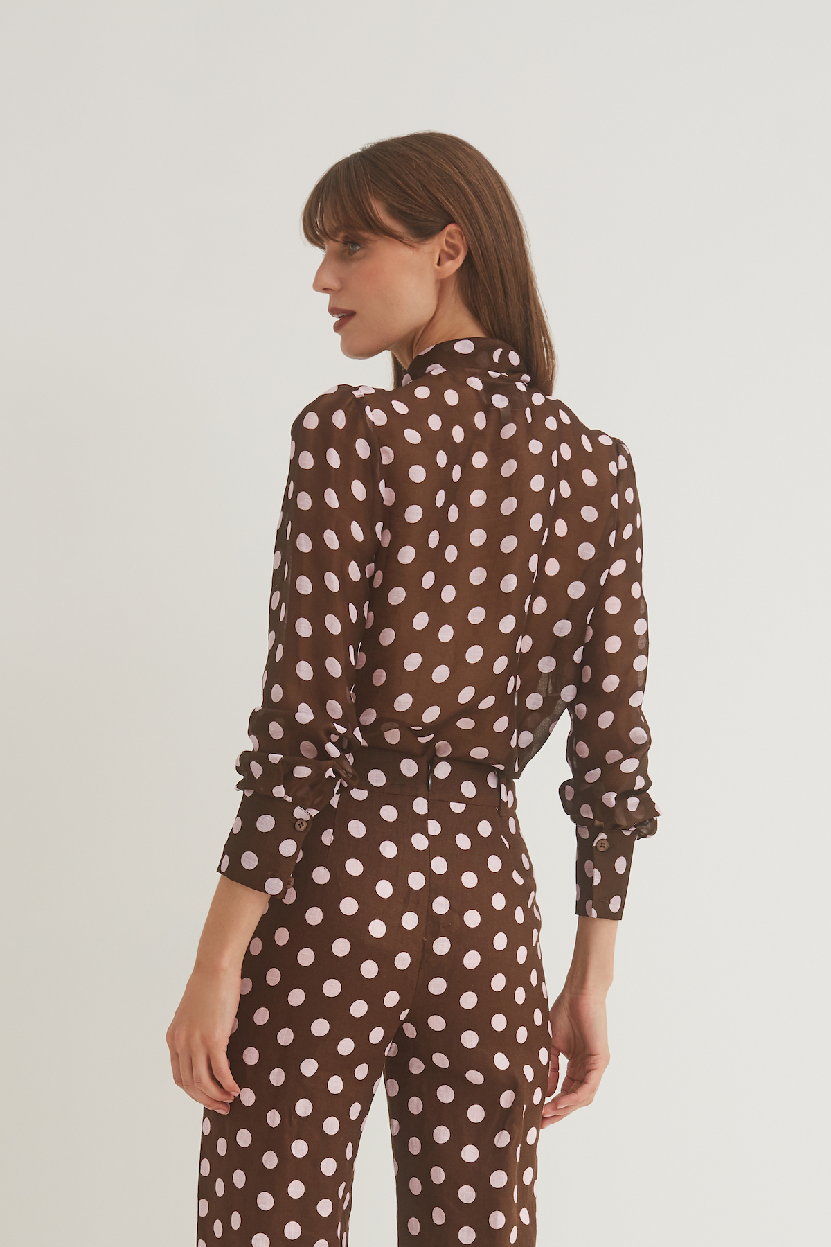 Breezy Blouse with a Playful Bow and Timeless Dot Elegance