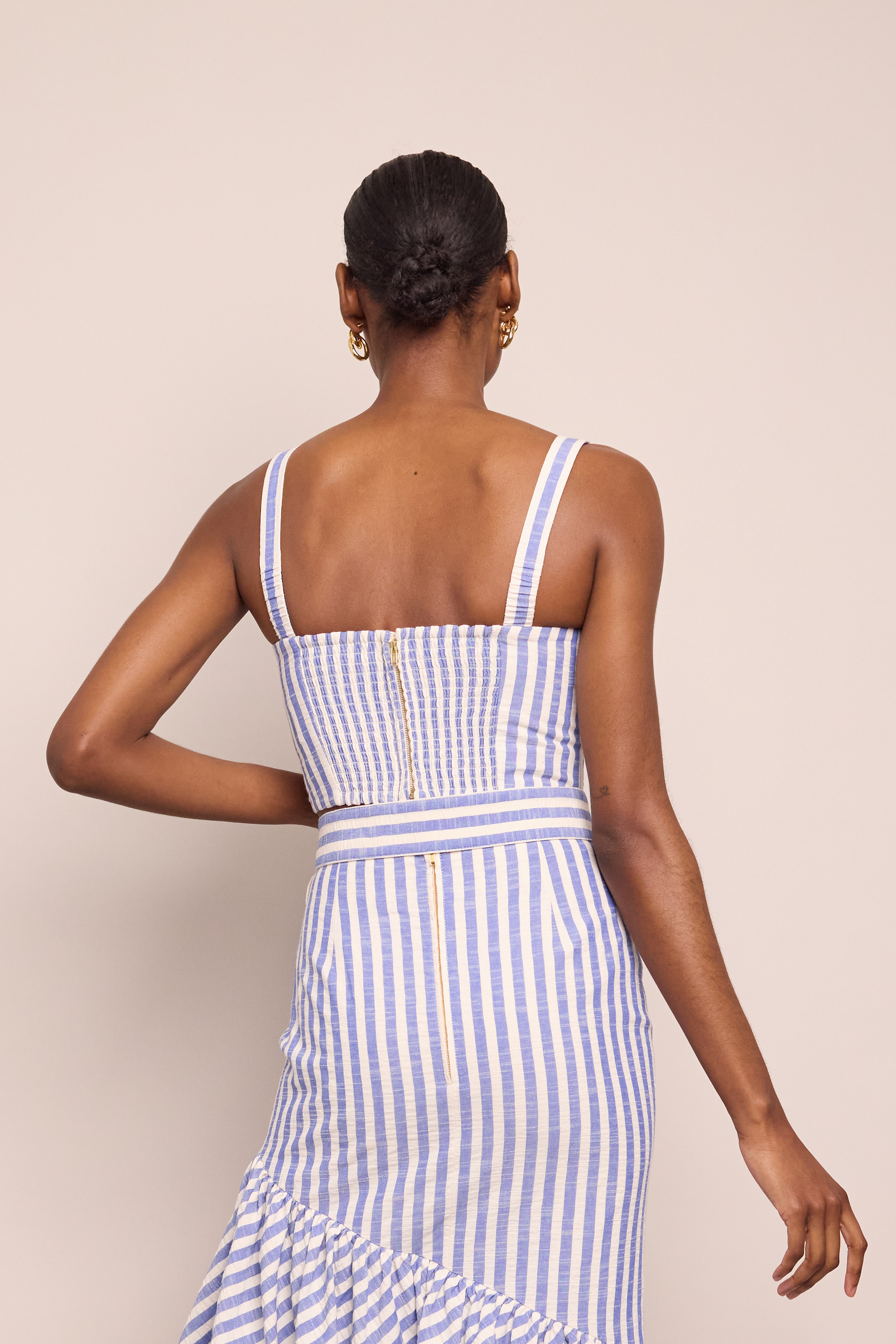 The Claudine Top was designed as an easy compliment to denim and matching printed looks. An extremely flattering and feminine corset crop top, the Claudine is designed in linen and pairs effortlessly with the matching Terra Skirt. The elastic at the back of the straps and fitted bodice allow for a comfortable fit and no-fuss pretty detail.