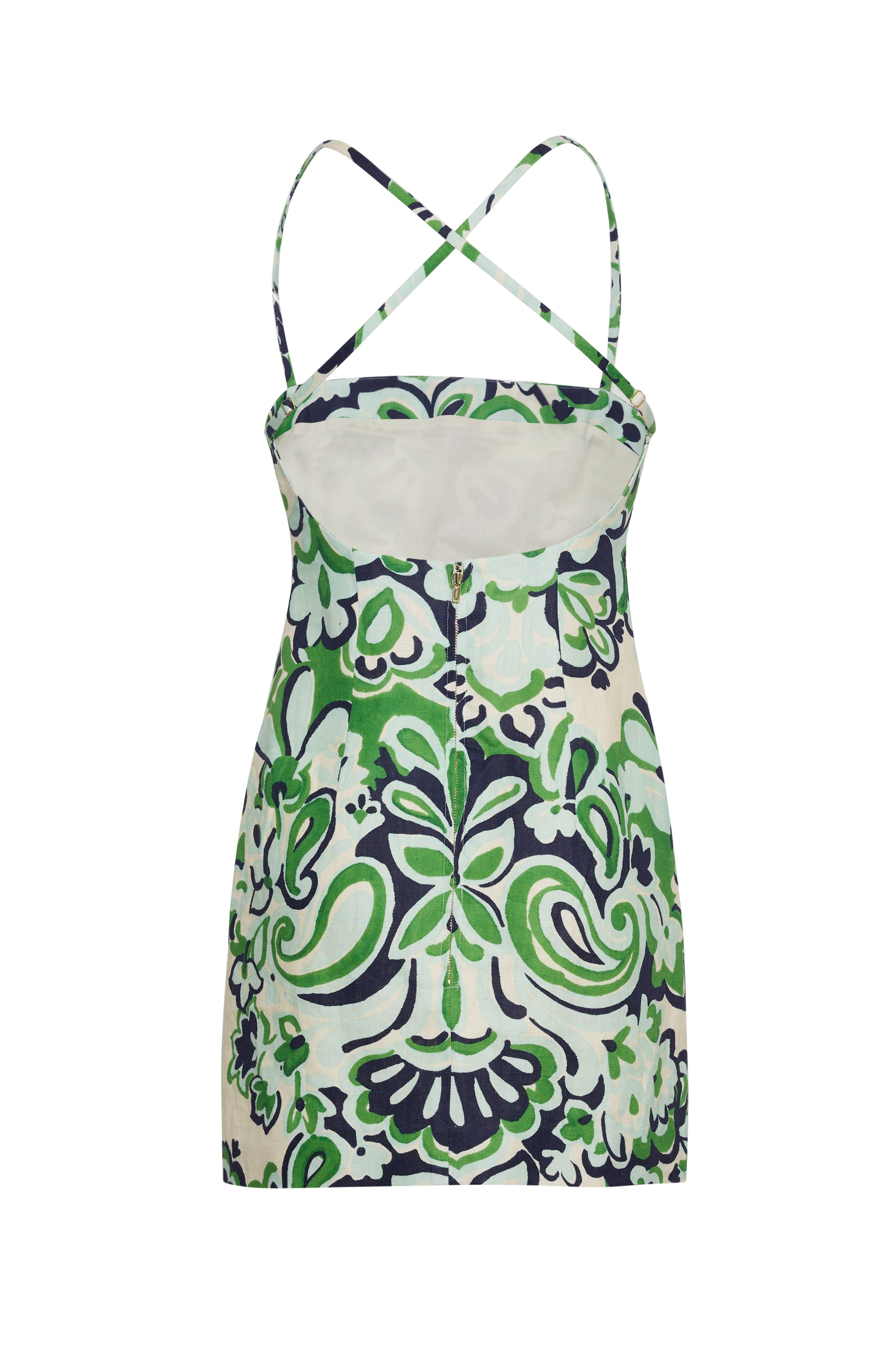 • Adjustable spaghetti straps, criss-cross at back neck