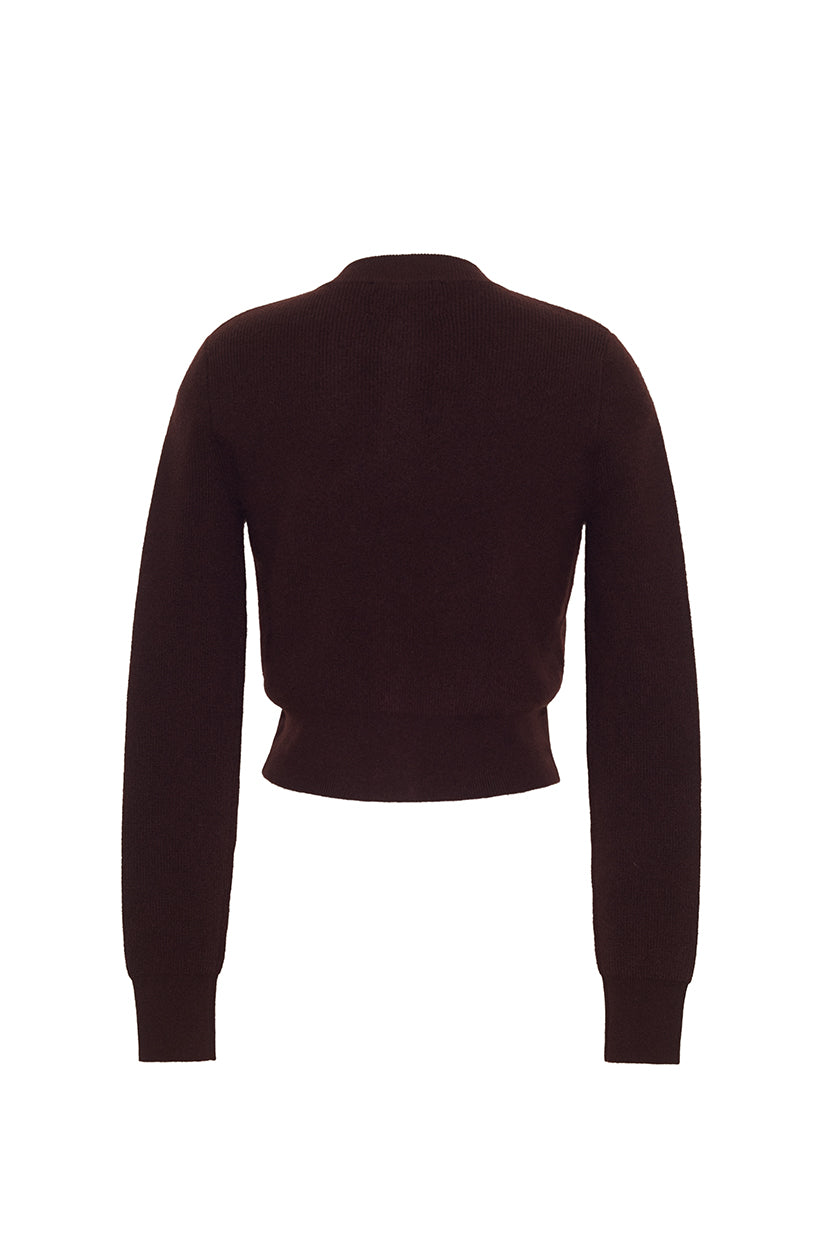 • Crewneck fitted long-sleeve cardigan with novelty gold floral buttons