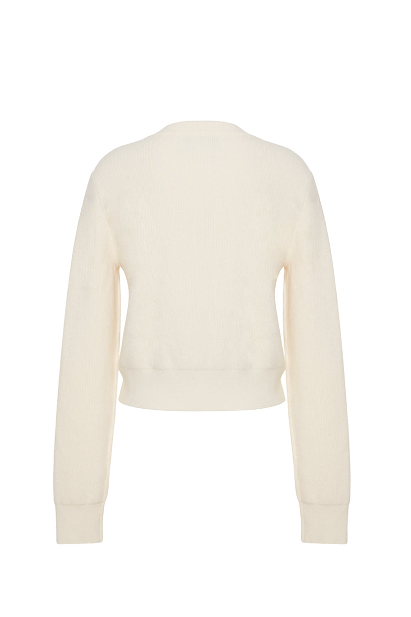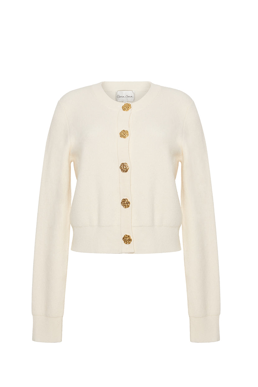 • Crewneck fitted long-sleeve cardigan with novelty gold floral buttons