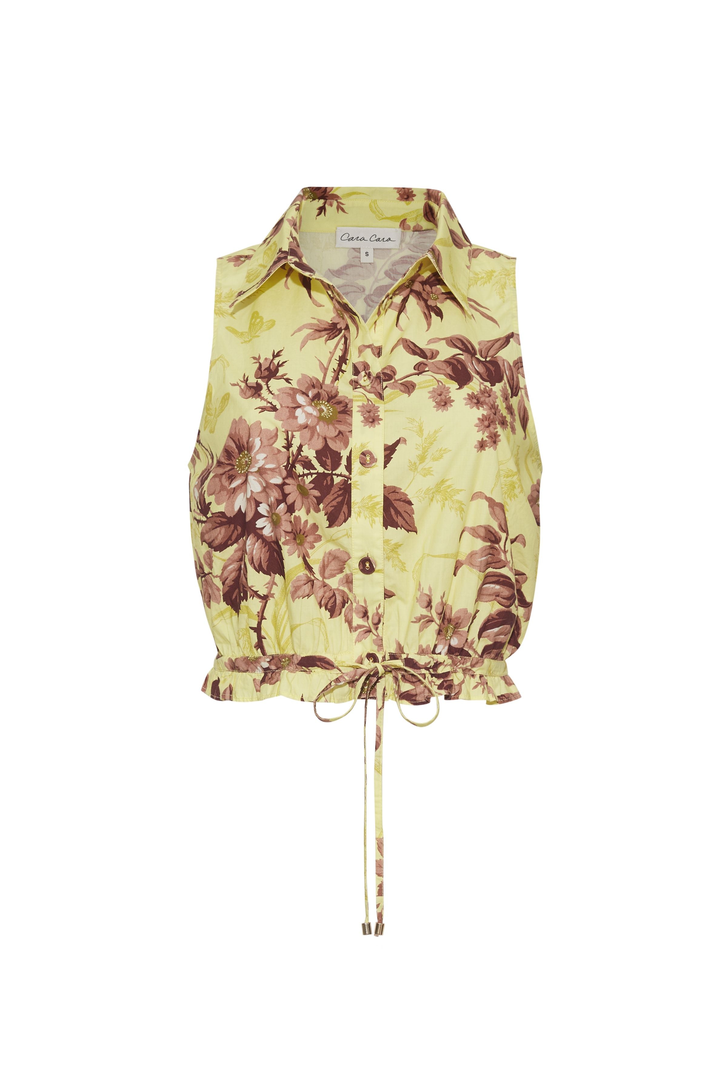 • Collared sleeveless button down halter top