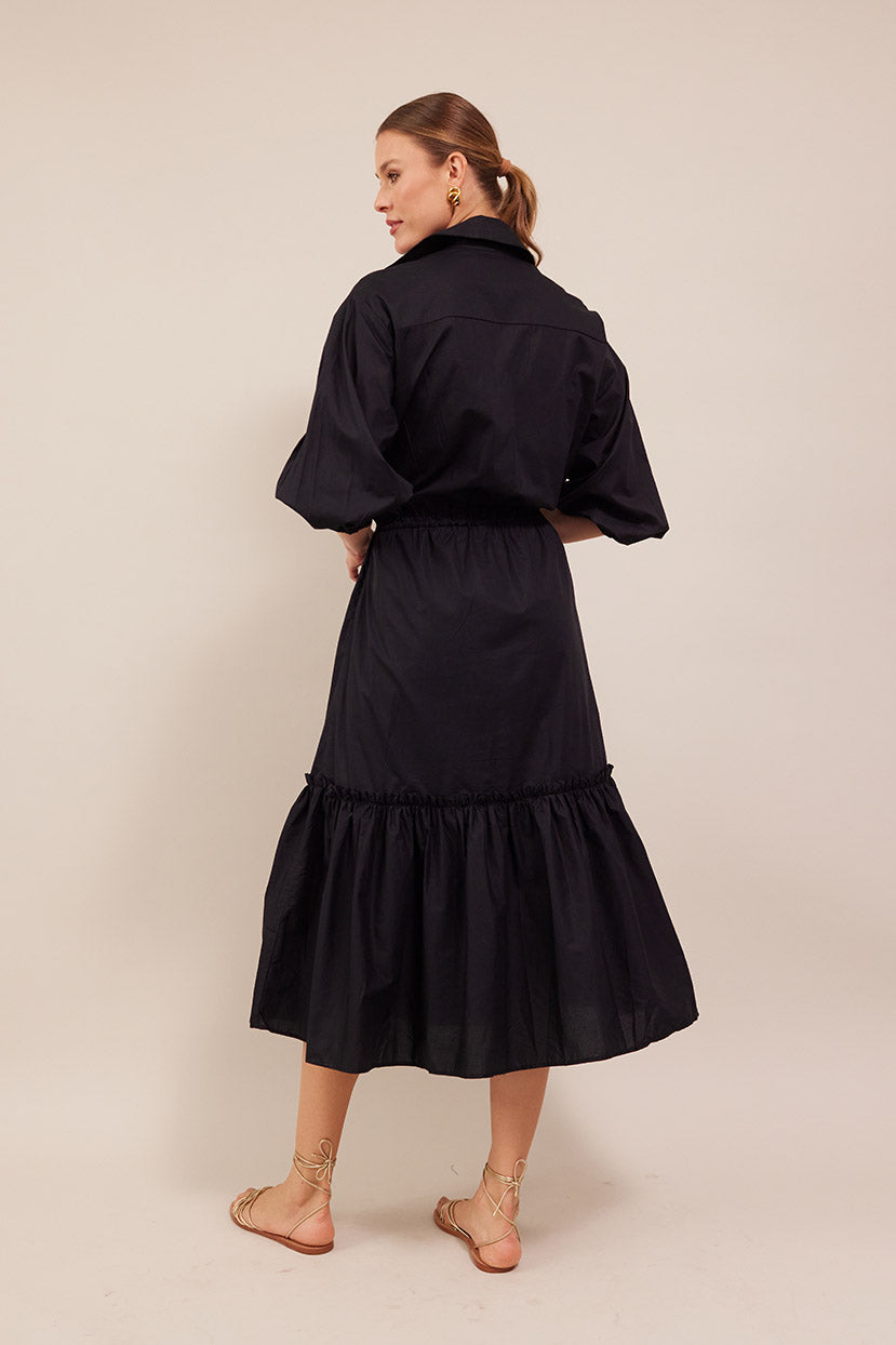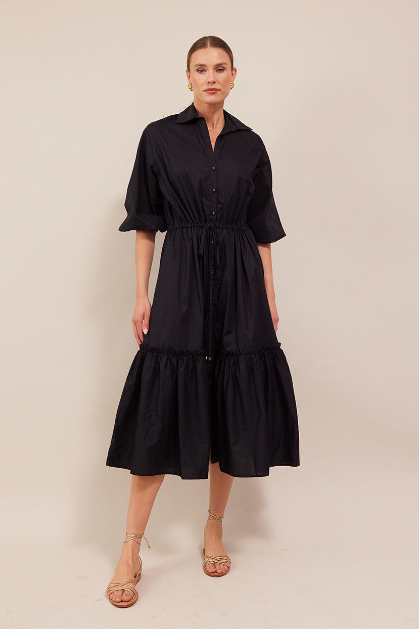 We took our best selling Hutton top and designed it into the most effortless, all-season piece. Featuring a shirt dress silhouette with self-tie cinch waist and ruffle tier skirt. Team with statement jewels and heels or a chunky knit and sneakers for maximum versatility.