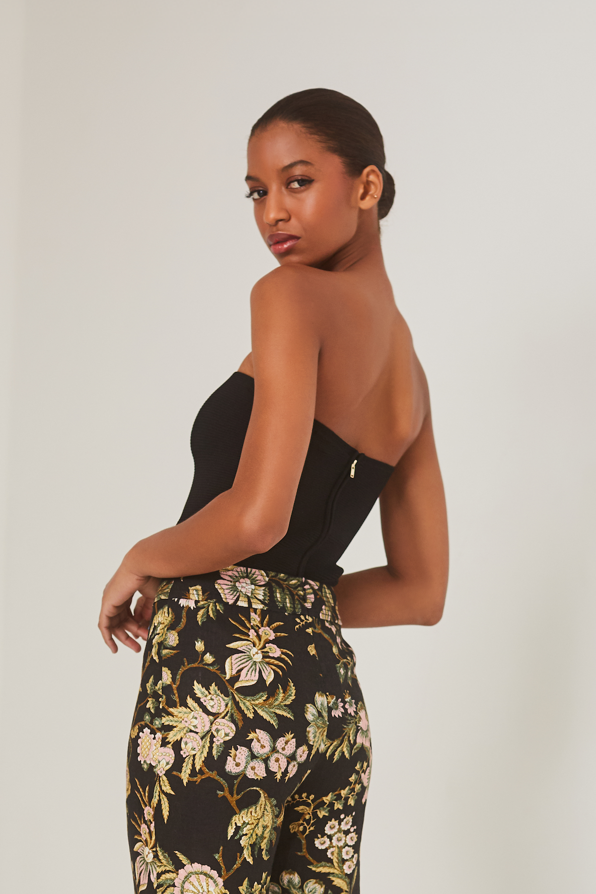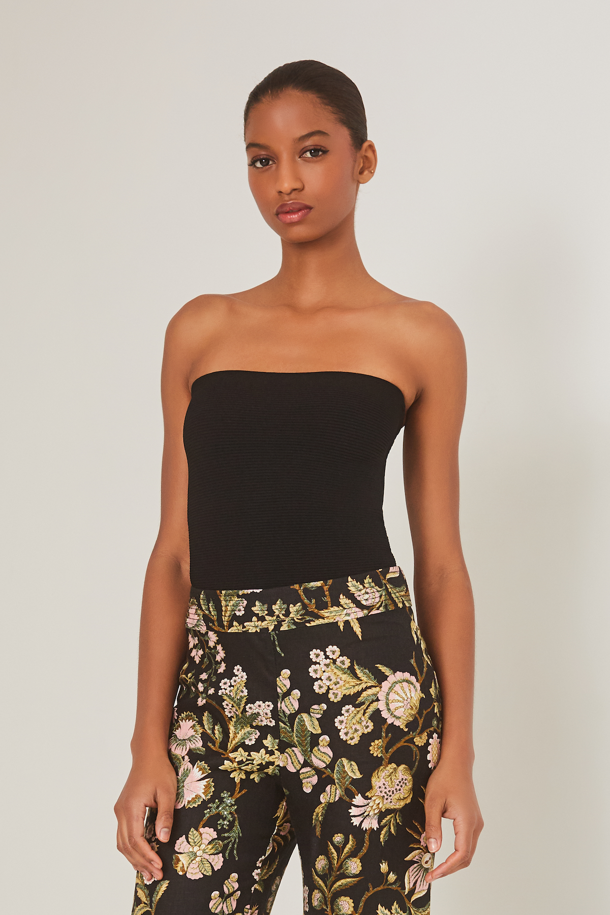 • Fitted Ottoman ribbed tube top with center back gold zipper