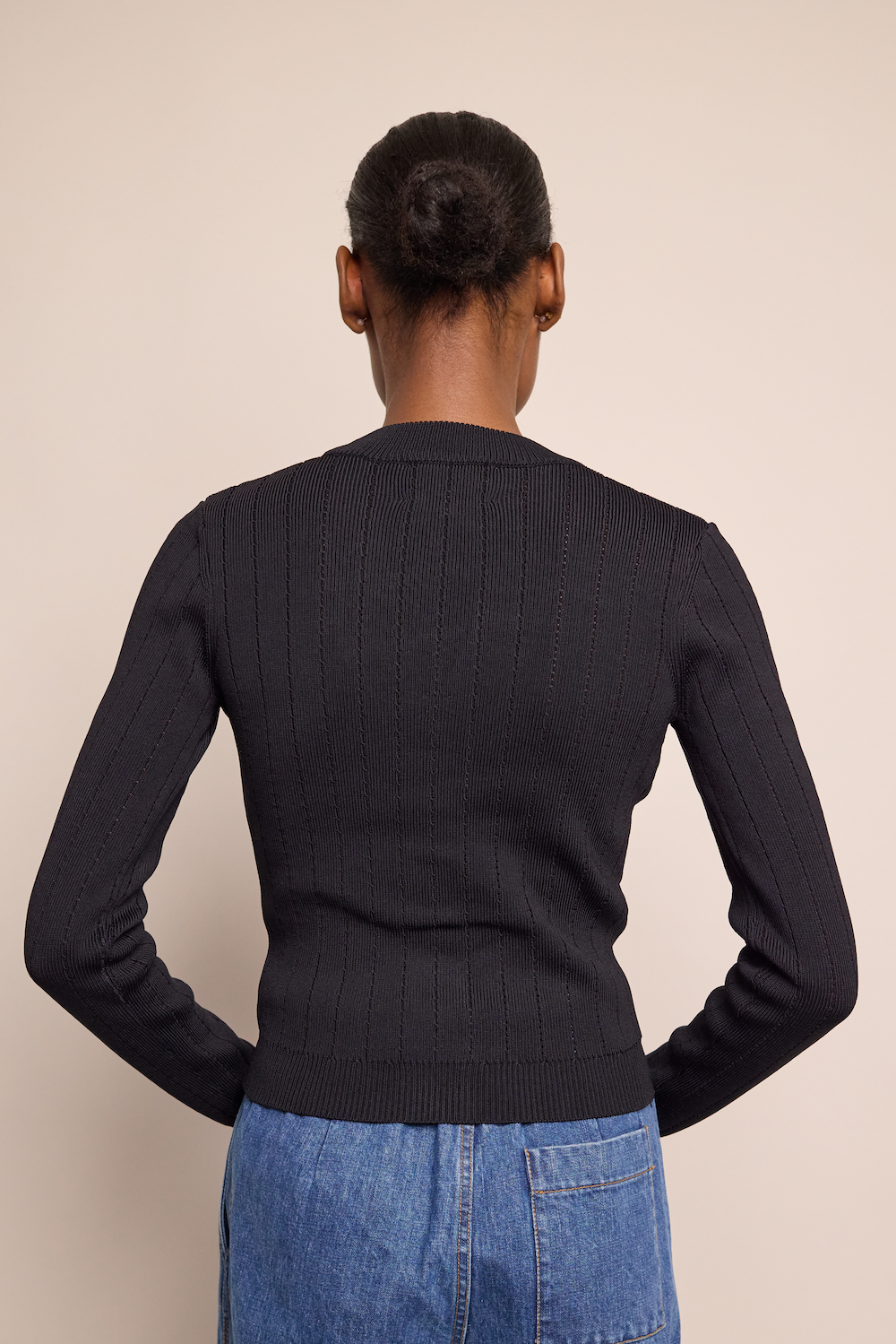 This garment is special and might stretch over time if hung. To preserve its shape, we recommend taking extra care and folding.