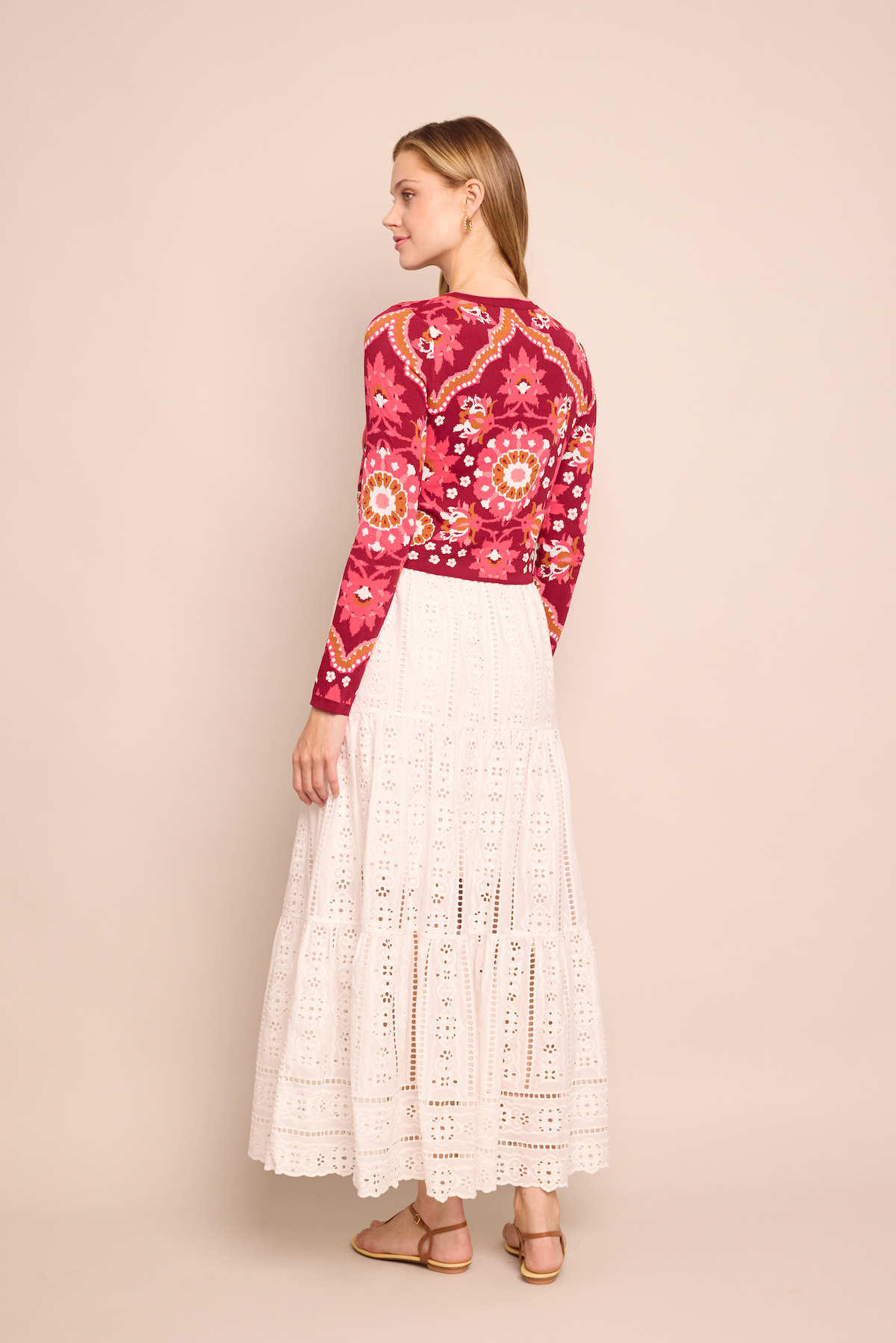 The Melanie is perhaps our most effortless skirt. The elastic waist and tiered silhouette flatter the figure and provide multiple styling options. Pair with our matching Perrin Top in the same eyelet for a fresh resort look or dress down with a white tee and kicks.