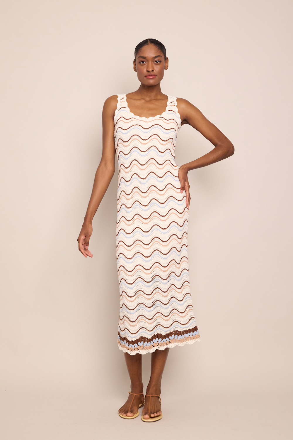 • Multi colored cotton crochet dress with hand crochet trims