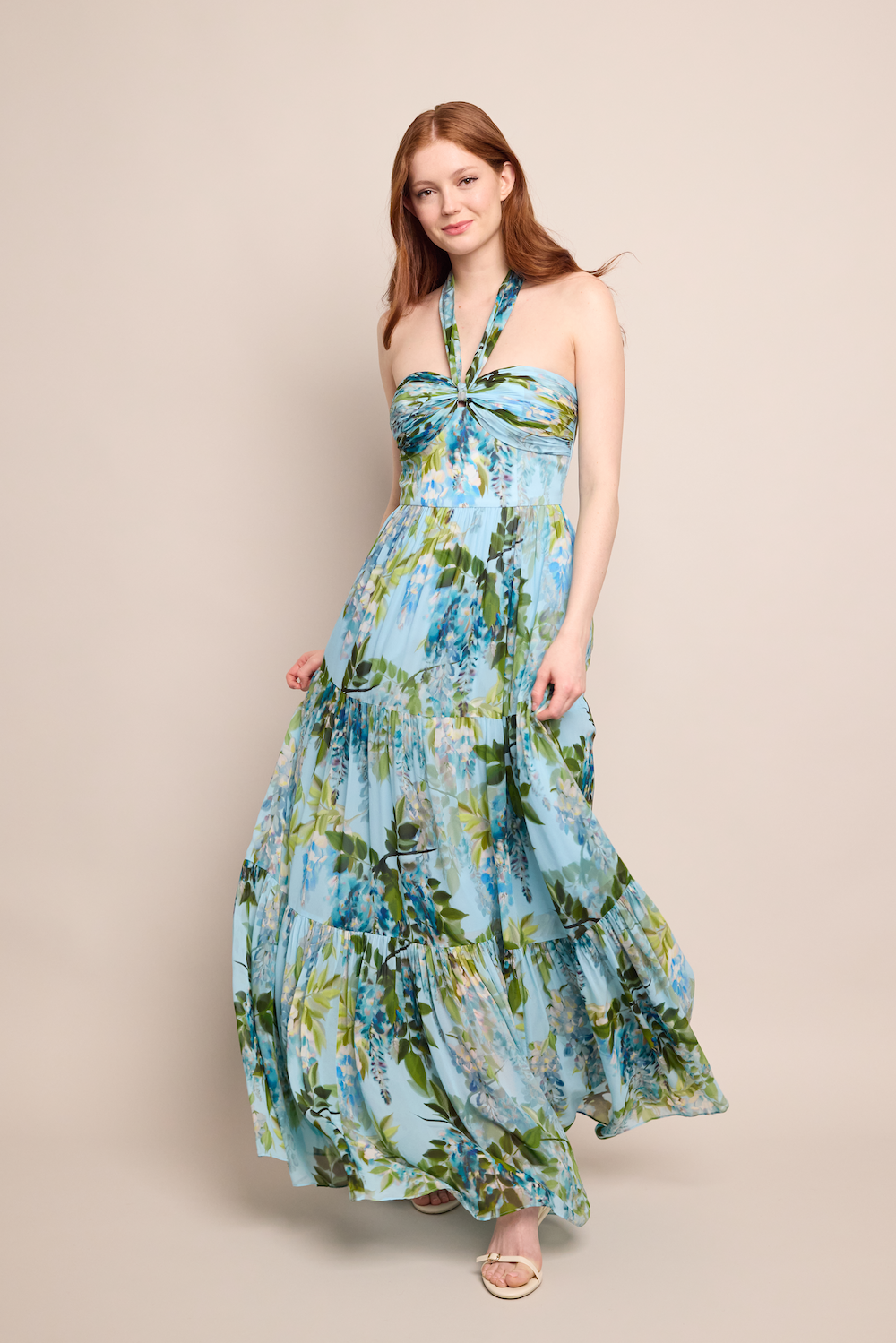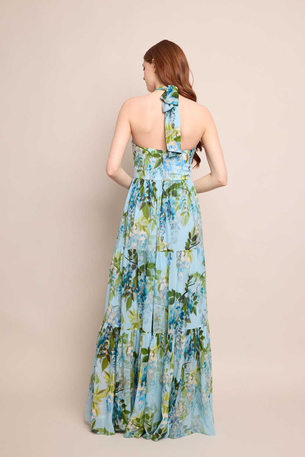 • Knot top halter maxi dress with tiers
