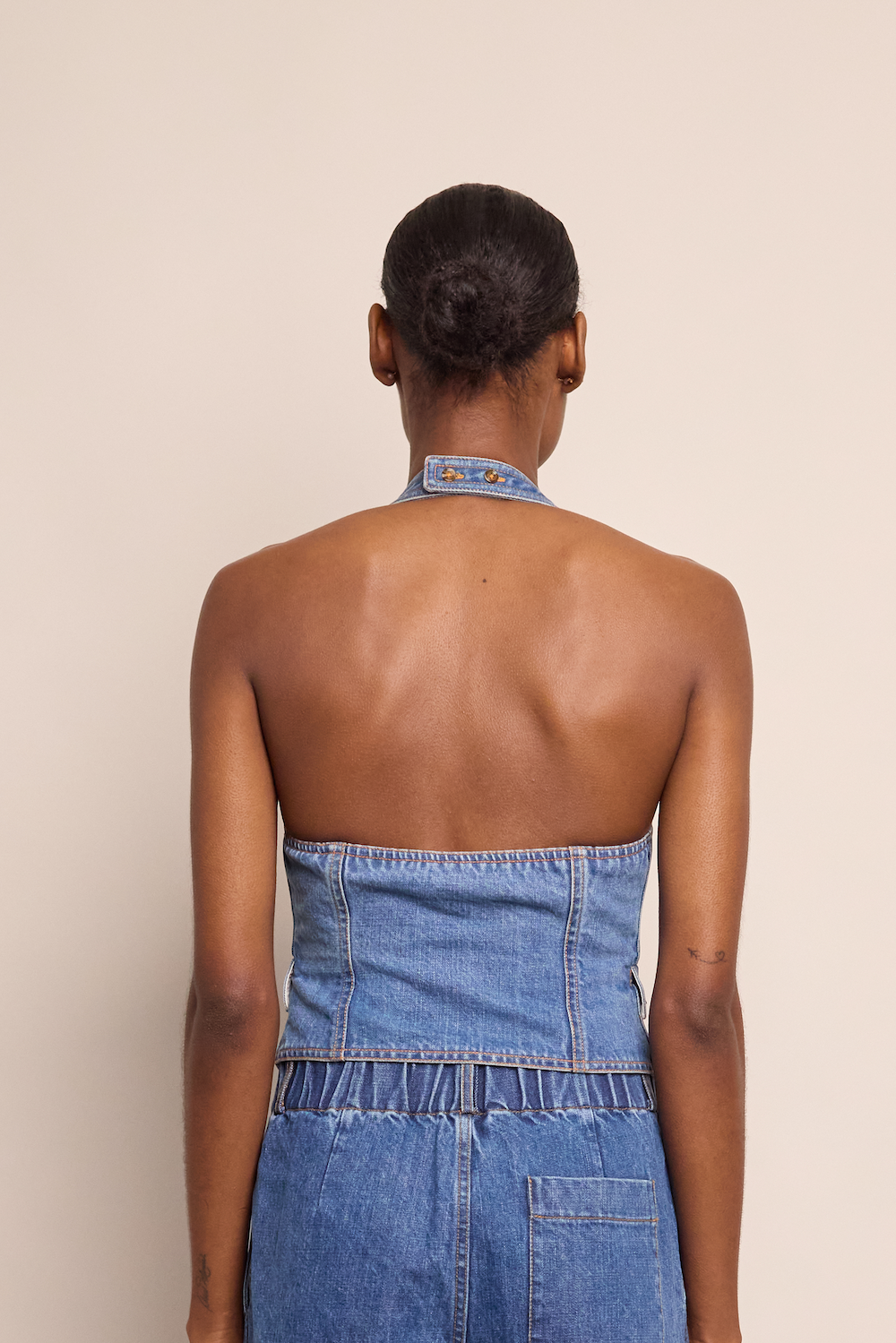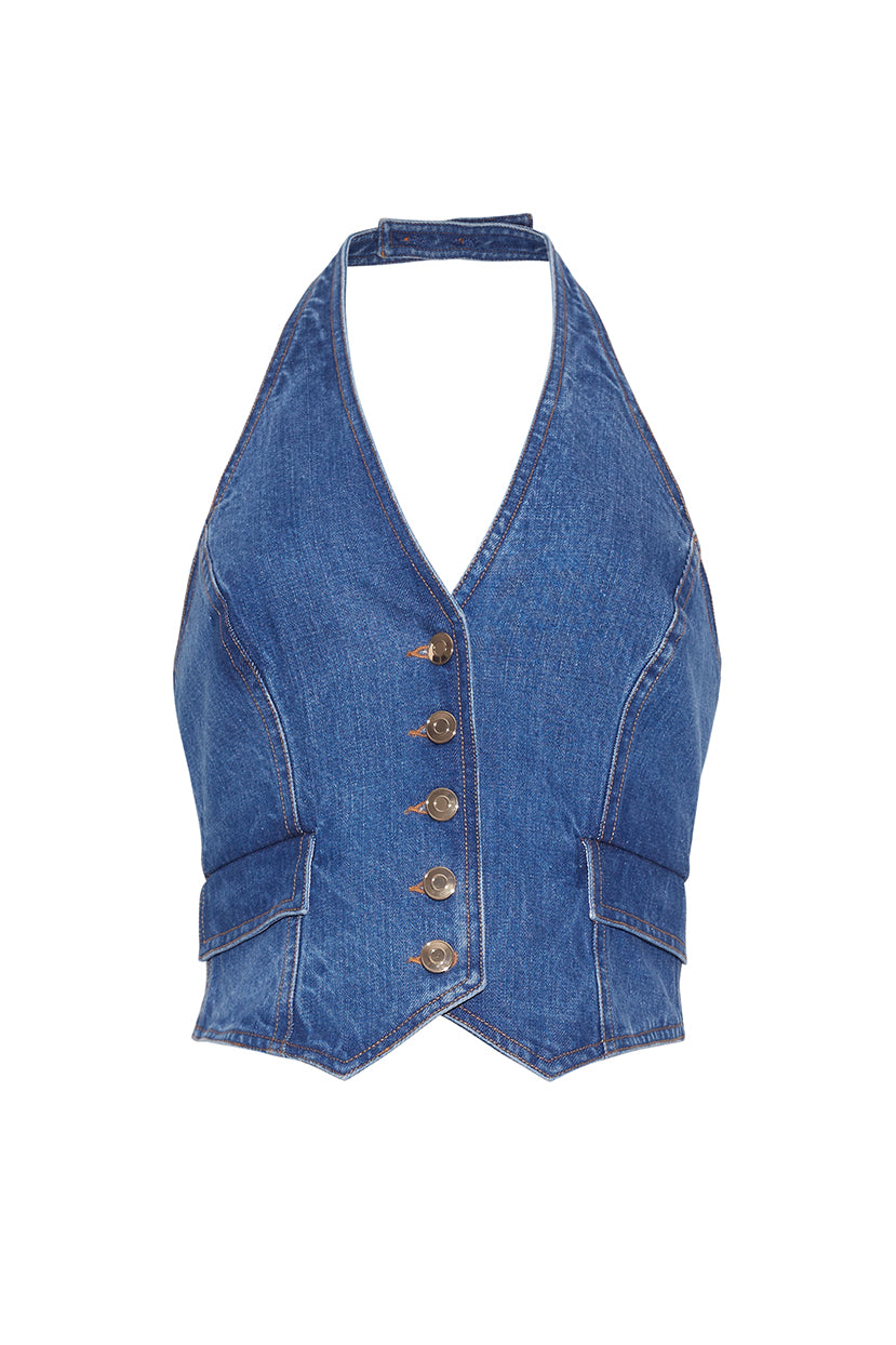 • V-neck halter fitted vest top with open back detail