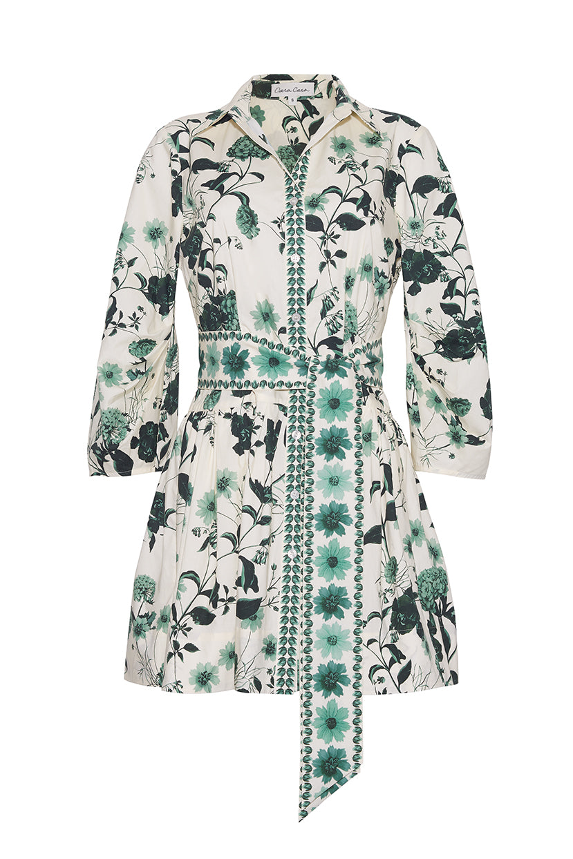 • Collared mini shirt dress with fit-and-flare silhouette