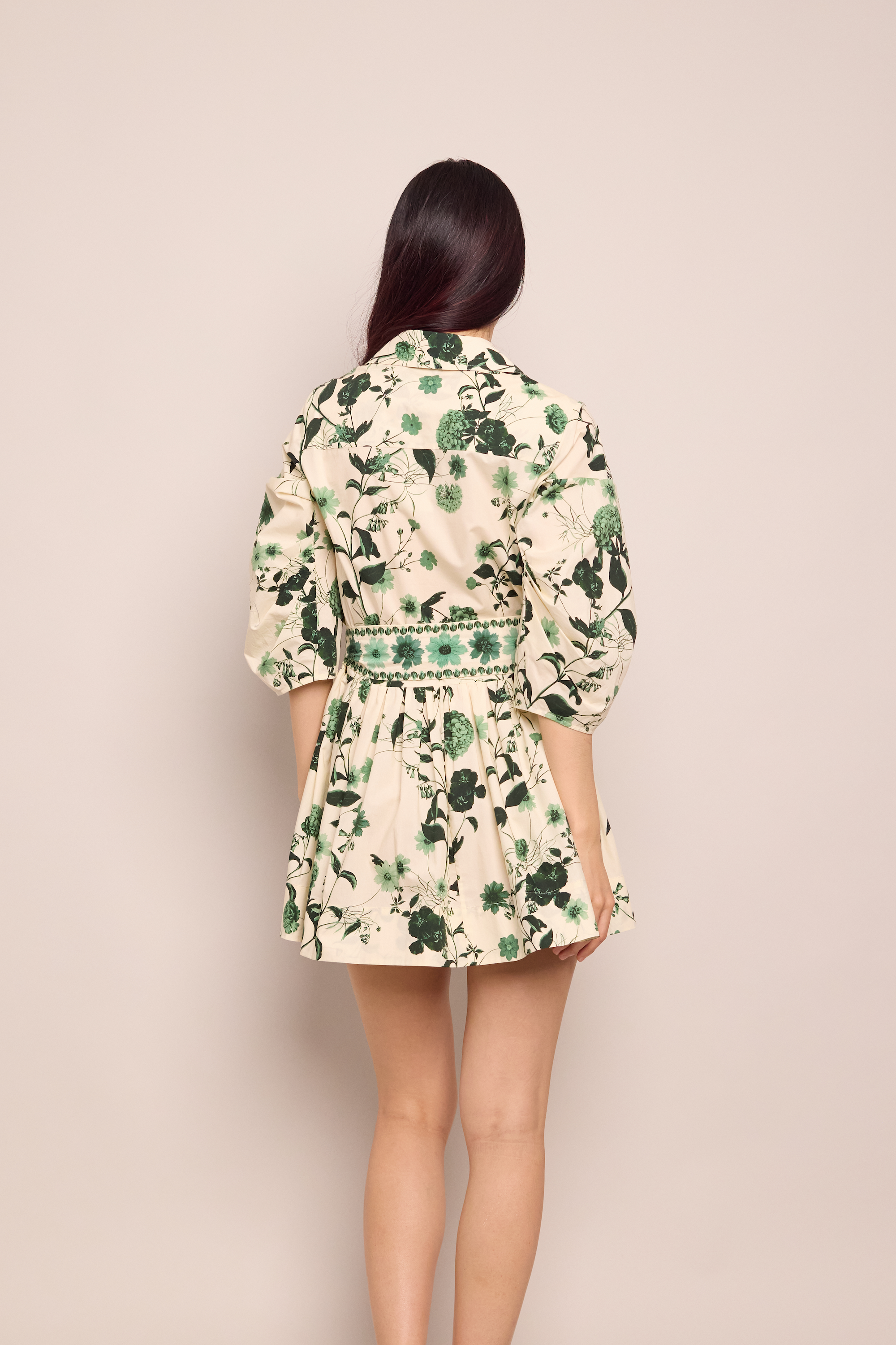 • Placed print at placket sash