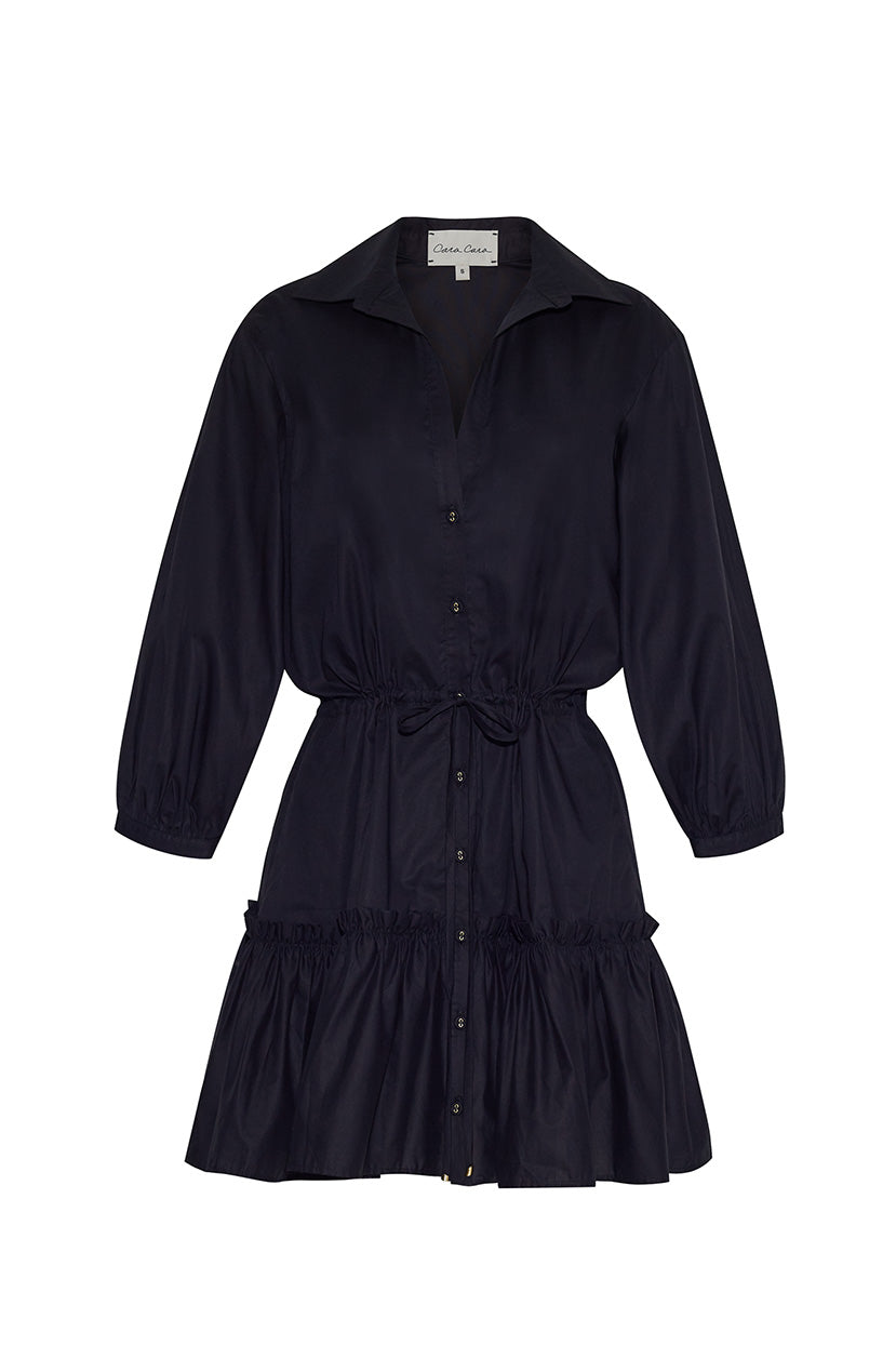 We took our best selling Hutton Dress and designed it into the most effortless, all-season piece. Featuring a tent dress silhouette with self-tie cinch waist and ruffle tier skirt. Team with statement jewels and heels or a chunky knit and sneakers for maximum versatility.