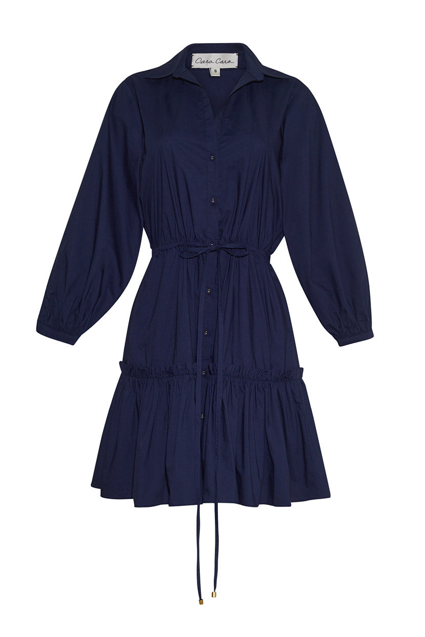 We took our best selling Hutton Dress and designed it into the most effortless, all-season piece. Featuring a tent dress silhouette with self-tie cinch waist and ruffle tier skirt. Team with statement jewels and heels or a chunky knit and sneakers for maximum versatility.