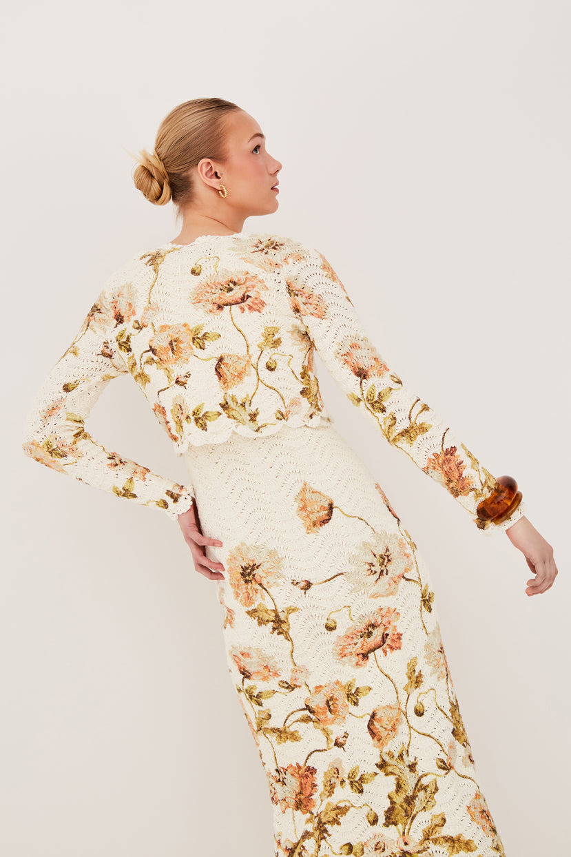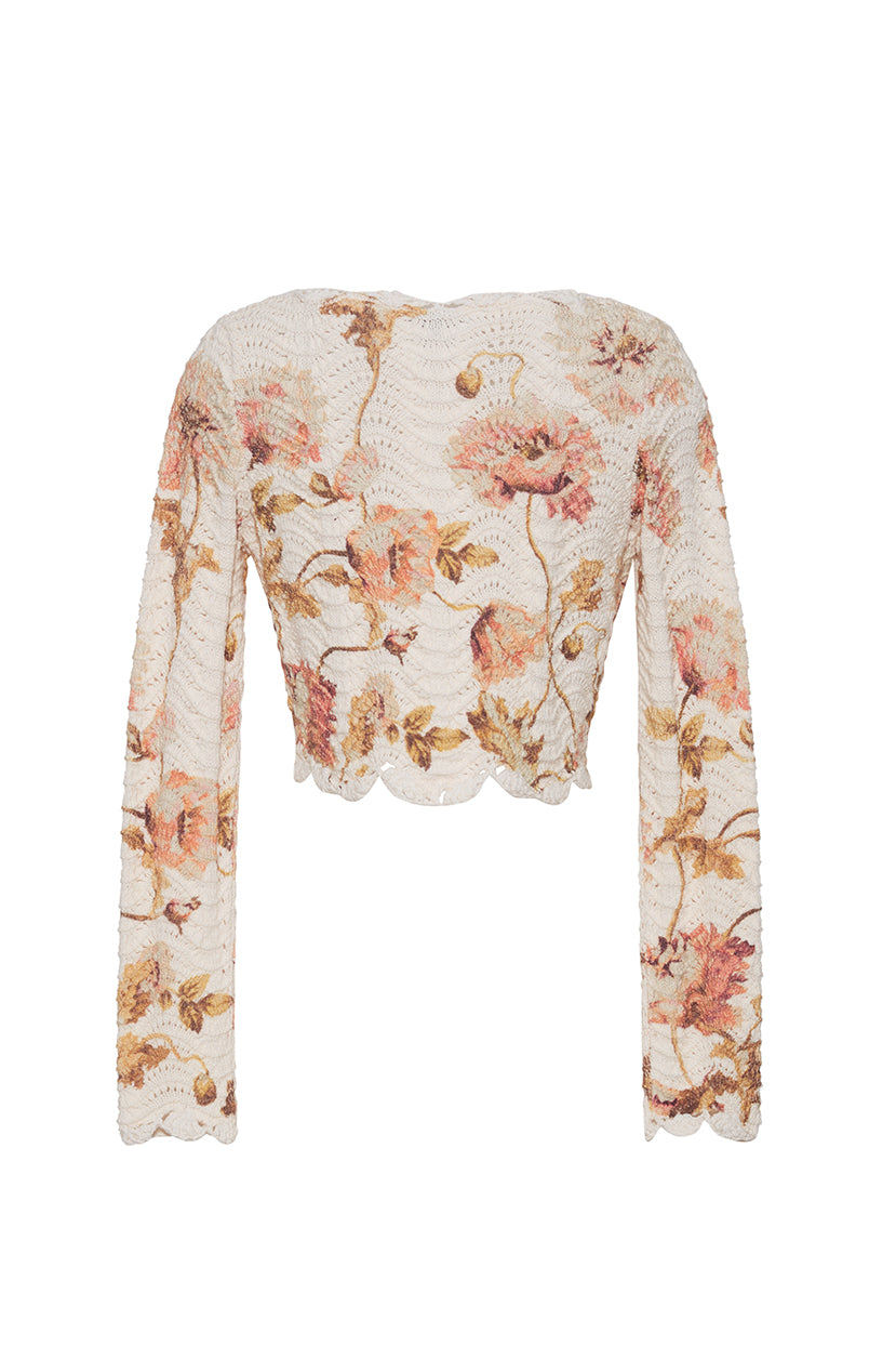• Allover wavy texture stitch with hand crochet trims