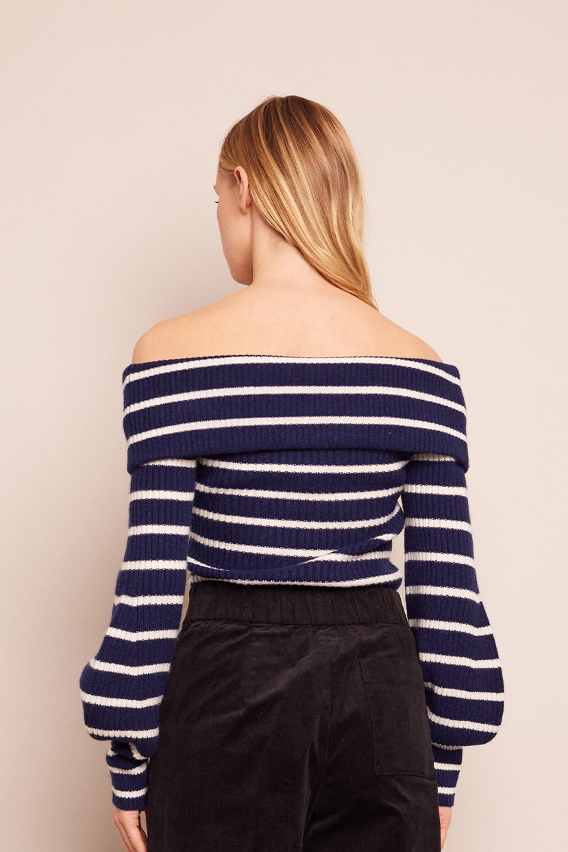Effortlessly Chic: Off-the-Shoulder Cashmere Blend Sweater with a Twist