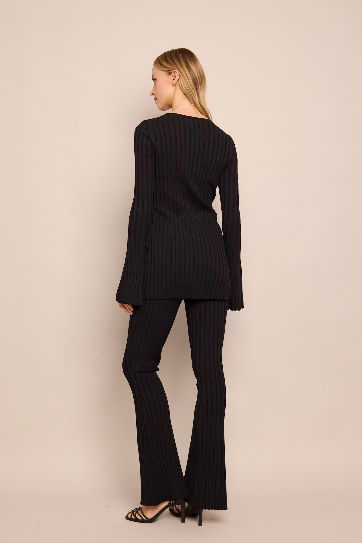 • Rib knit throughout the thigh and flares starting at the knee