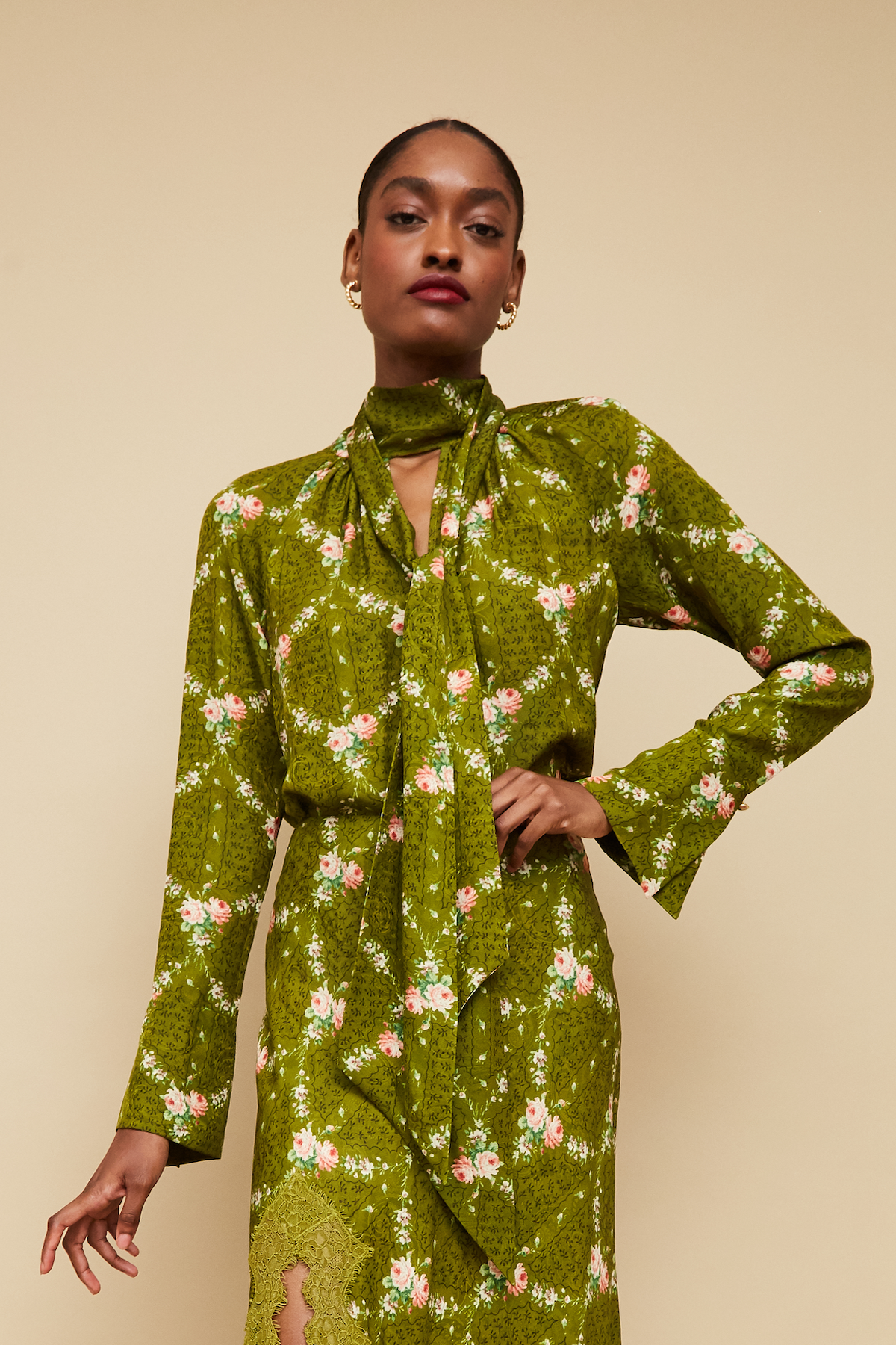 • Mock-neck long sleeve blouse with long ties
