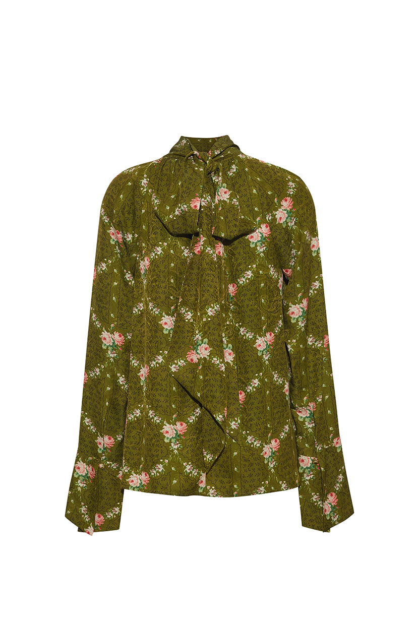 Breezy Printed Blouse with a Playful Bow and Timeless Elegance