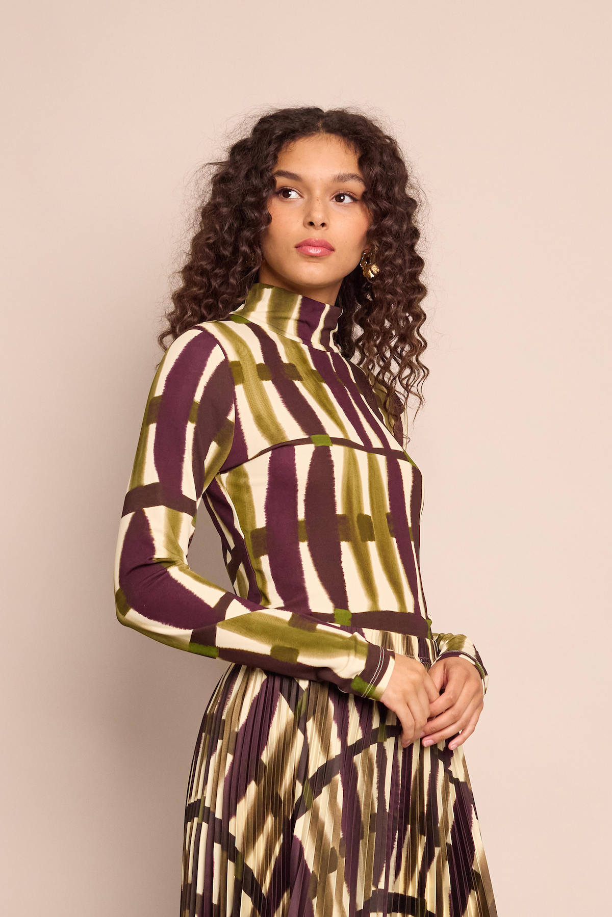 The Suzie Top is an ultra-luxe, elevated layering staple sure to become a key part of your wardrobe rotation. The fitted mock-turtleneck silhouette is rendered in boldly printed slinky jersey.