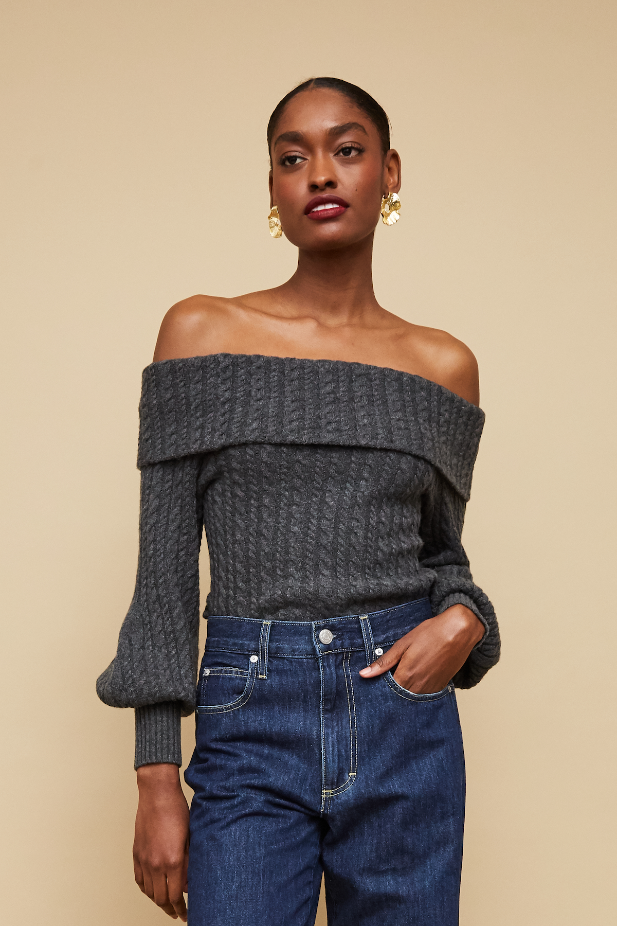 Off-the-Shoulder Ease in Sculpted Cable-Knit